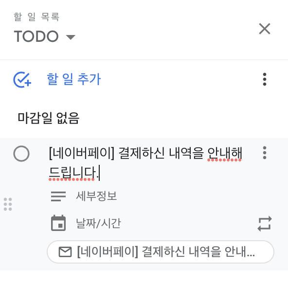 3. 구글 태스크에 할일 추가됨