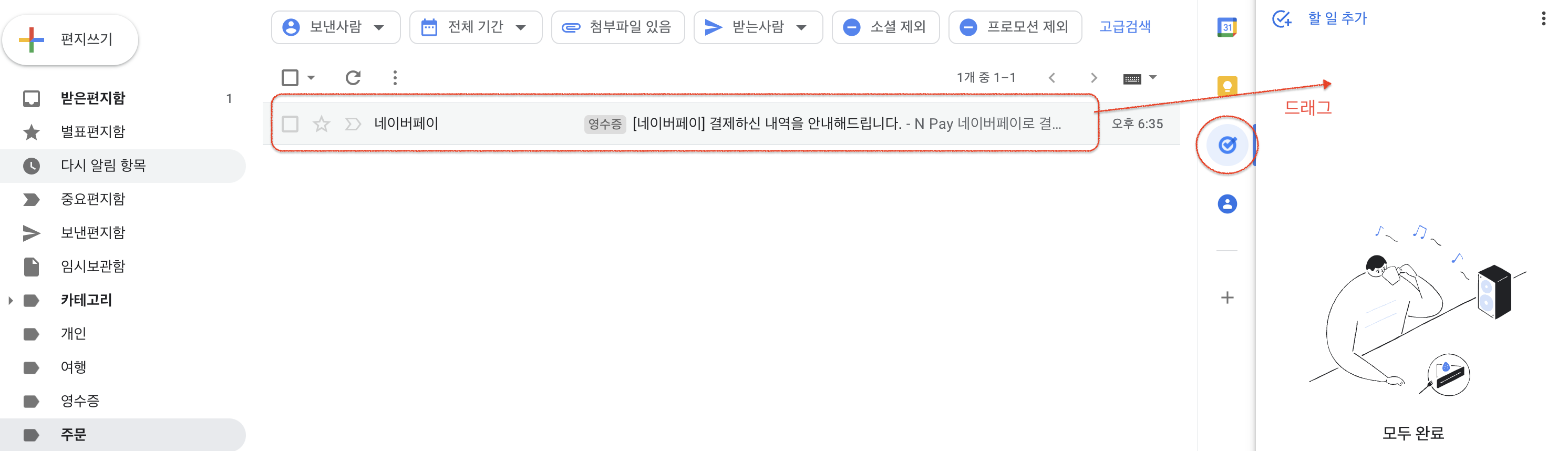 2. 할일 추가할 이메일을 구글 태스크 영역으로 드래그